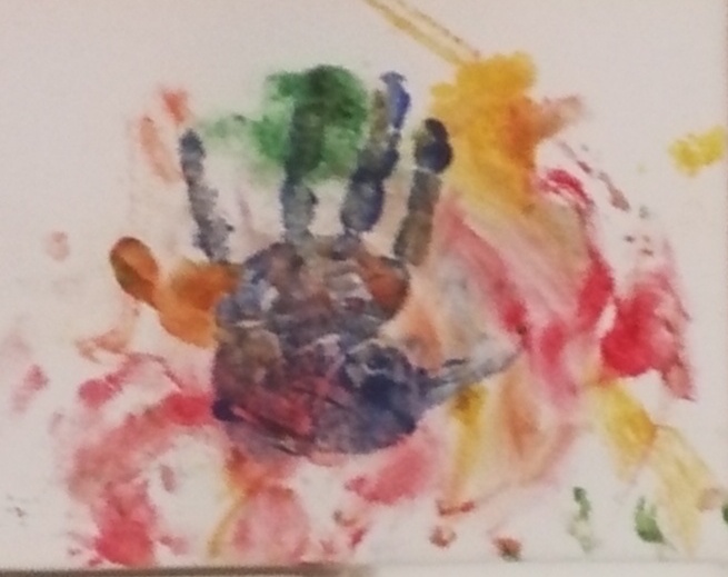Paride e la nonna, rimasero per un bel po’ a guardarsi dolcemente, dalle loro mani erano emersi pensieri profondi. Decisero di aggiungere sul disegno, sopra la figura di Sballo, le impronte delle loro mani, come simbolo di condivisione e ricordo della bella giornata appena trascorsa. La nonna scelse di immergere la sua mano nella tempera blu.